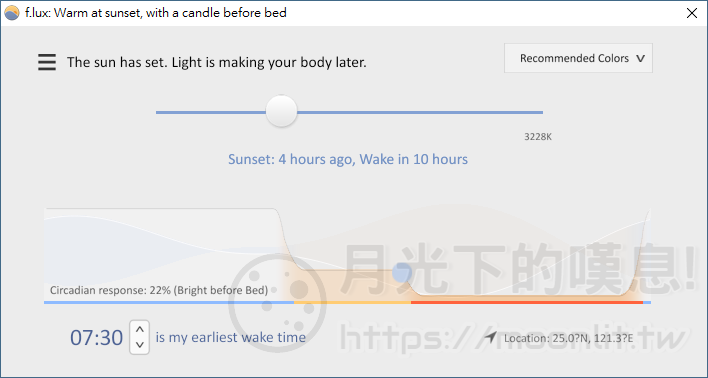 黃斑部病變已經變成現代人的文明病,因為大量需要螢幕的行動裝置問世,所有的人造光源都保留了大量的藍光,藍光會造成視網膜色素上皮細胞死亡,間接造成視網膜病變、黃斑部病變等眼病發生。今天要介紹一款用在電腦上的藍光過濾器「f.lux」,它能隨時您所設定的時區,進行適當的色溫調整與消減藍光,非常適合長時間使用電腦的朋友使用。
