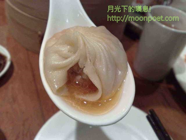 ▲ 將一個湯包挾上湯匙上食用,還沒咬就已經破了,裡頭的湯汁全部流到湯匙上,你忍的住嗎?