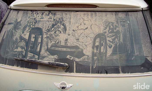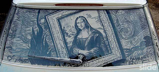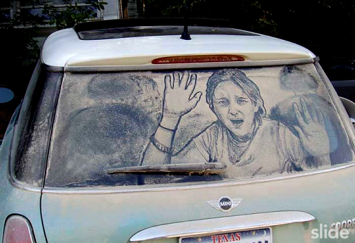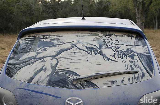 相信大家都有看過砂畫的藝術,但在網路上又流傳了比砂畫家還要猛的灰塵畫家,這位灰塵畫家居然可以利用積在車子上的灰塵來作畫,不相信嗎? 那請接著往下看吧。