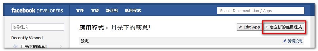 ▼ 授權使用開發者工具,接著點擊右上角的建立新的應用程式。