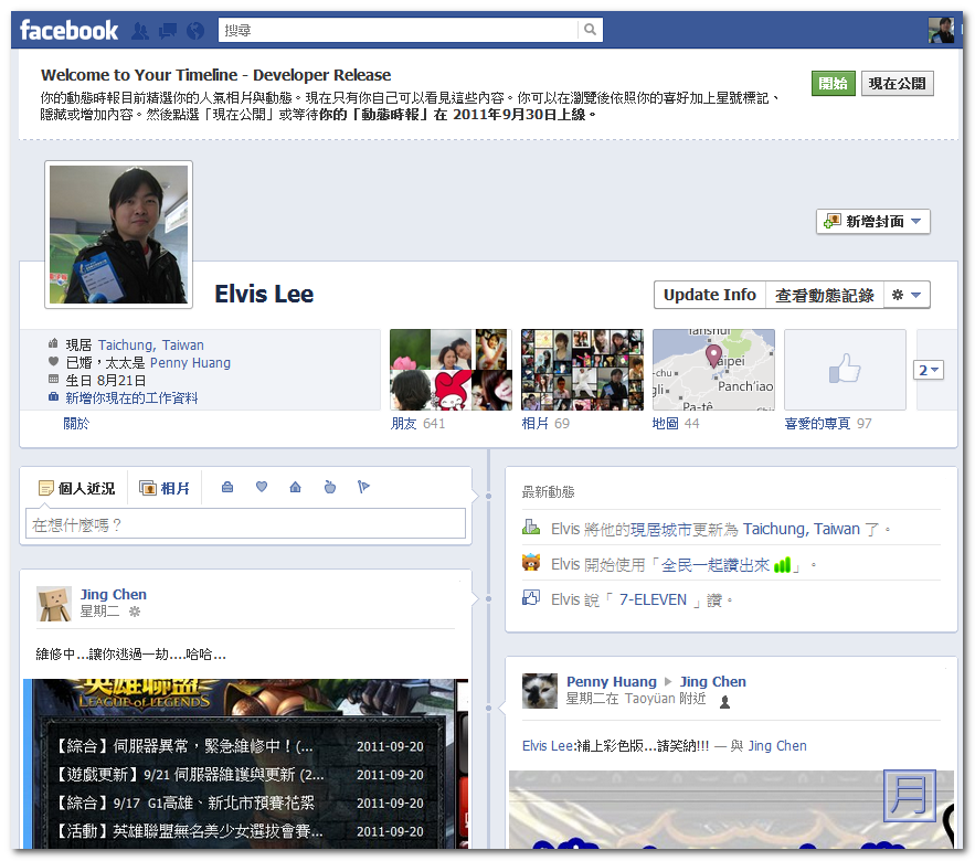 Facebook 前陣子在F8大會中宣布重大改版的訊息,創辦人祖伯克說未來的臉書將會以時間軸的概念呈現在大家的眼前,什麼是時間軸概念呢? 其實就是把您的臉書首頁變成一個屬於自已的網路傳記,什麼時間做了什麼,誰在什麼時間標記了你,在時間軸上都可以看的一清二楚,以時間的概念來說,非常容易觀看有關您的訊息,而且最頂部還能置入您喜歡的背景圖案,讓您可以自訂一個屬於自已的頁面,但目前尚未開放更新的內容,想要先嚐鮮體驗其實也是可以的,以下就要教各位如何先行試用時間軸的Facebook。