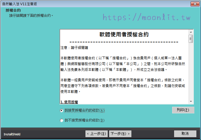軟體名稱:自然輸入法