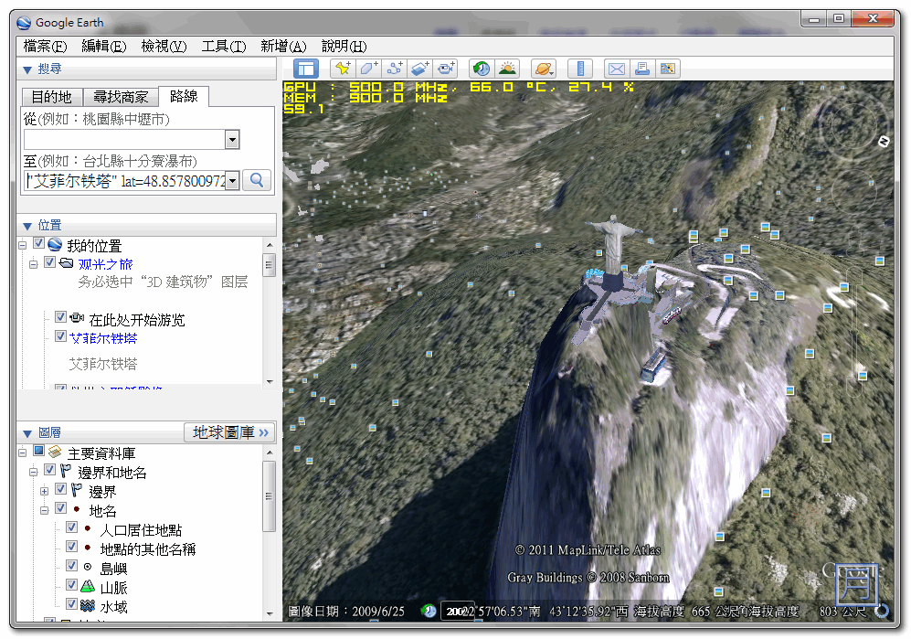 ▼ 巴西里約的耶穌像用 Earth 俯看真是棒啊。