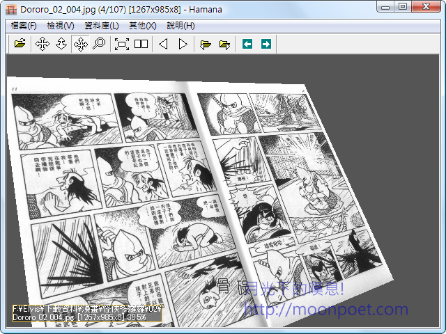 這款 Hamana 大家一定耳熟能詳吧,因為上次介紹一款 KUView 大家好像不是很滿意,於是今天又特地介紹這款網友所推薦的 Hamana,實際操作起來真的就是專門用來瀏覽漫畫用的軟體,支援放大鏡、影像強化、寬螢幕多頁同時顯示、3D特效翻轉、多種翻頁特效、各種秀圖濾境、資料庫等。甚至還可以直接由RAR或ZIP壓縮檔內讀取漫畫圖檔,省去很多解壓縮的時間,其中最讓我覺得神奇的就是各種翻頁的特效吧。
