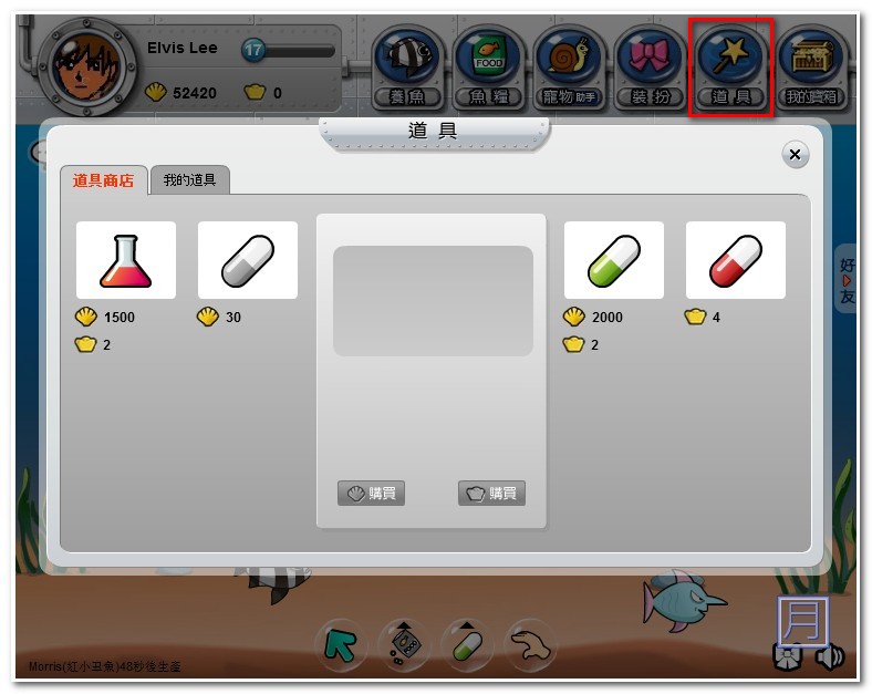 ▼ 「道具」選項有販賣螃蟹藥水與生長藥劑,有需要的朋友再買吧。