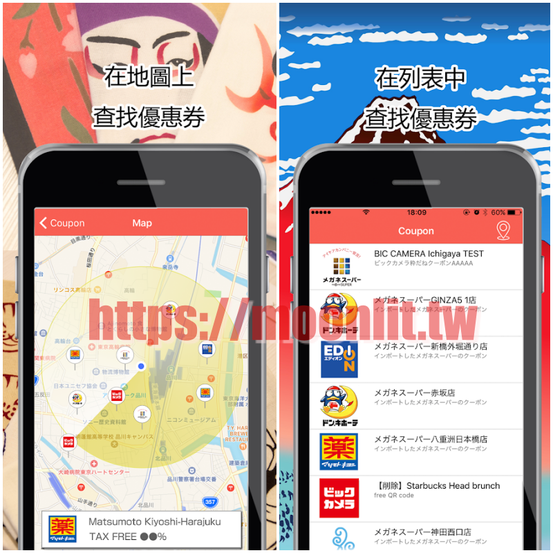 兩種方法都將根據您所在的位置,由近至遠順次顯示您周邊的優惠券,且可以立即使用。
