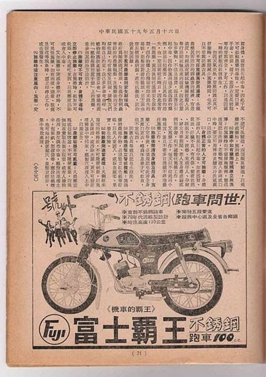 前陣子彎道情人的摩托車廣告可以說塑造出非常成功的商品形象,現在的摩托車廣告文宣都很酷炫,但是大家有看過古早時代的摩托車廣告文宣嗎? 如果沒有,您一定要接著看下去。