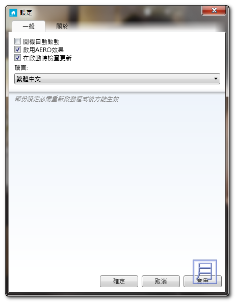 ▼ 在設定中可以選擇是否要開機時一起啟動,也能啟用 Windows Vista/7 的 AERO 視窗特效唷。