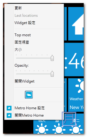 ▼ 在 Metro Home 上按下右鍵就能出現設定的選項。